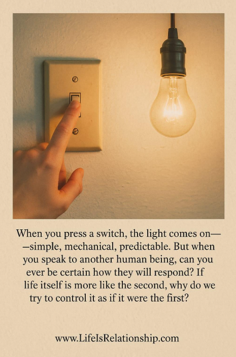 Can We Really Control Life—or Is Control Just an Illusion?  https://lifeisrelationship.com/can-we-really-control-life-or-is-control-just-an-illusion/?utm_source=rss&utm_medium=rss&utm_campaign=can-we-really-control-life-or-is-control-just-an-illusion Fri, 19 Sep 2025 13:50:41 +0000 https://lifeisrelationship.com/?p=36713 We often think we can control the future, plan every step, and predict the outcome.   But is that really possible? Take a moment to reflect on your own life. Think about the times you thought you had everything figured out, only to have life surprise you with a twist or turn.  We can control mechanical…
